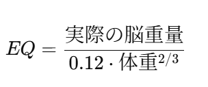 - EQ = 実際の脳重量 ÷ 体重から予測される脳重量