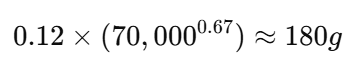 - k, r = 定数(哺乳類や鳥類など、分類群ごとに異なる)