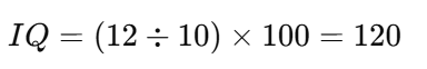 IQ=(12÷10)×100=120