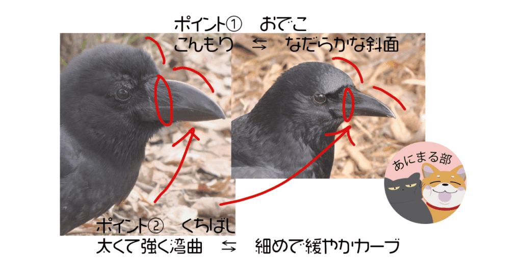 - ハシボソ…くちばしから頭頂までなだらかな斜面