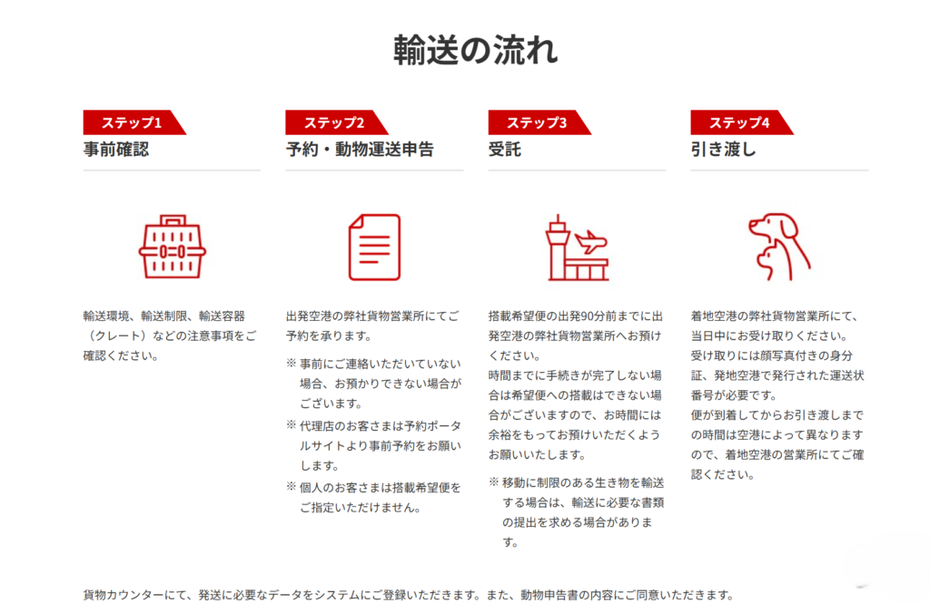 - 予約方法: JALカーゴの専用窓口へ事前電話予約が必須